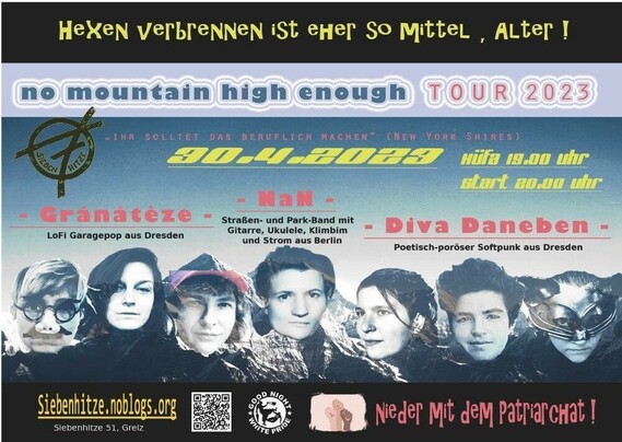 Kein Bock auf Dorffest? Dann kommt bei uns rum. 30.04.23 #gránátêze #NaN #divadaneben gemeinsam auf Tour und bei uns zu Besuch. Ab 19 Uhr gibts Futter, Musik startet 20 Uhr. #flintatothefront :solidarity: #greiz #lofi #punk #provinz https://siebenhitze.noblogs.org/post/2023/03/08/3-x-duo-tour-diva-daneben-nan-granateze/