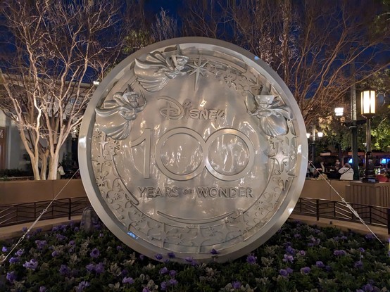 Decor for #disney100 at the driving entrance to the #grandcalifornianhotel . #florafaunamerryweather #disneyland #magicisback #magicishere