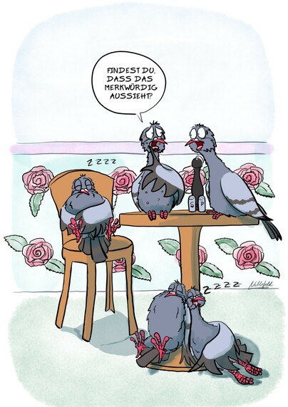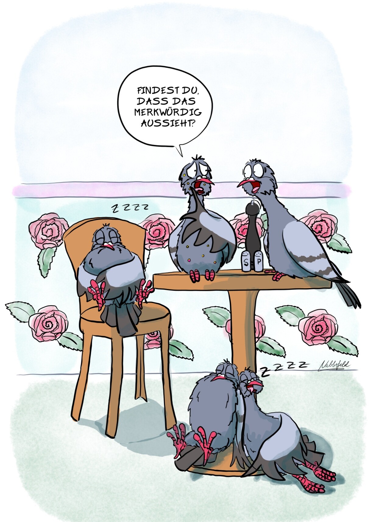 #cafe #offentlich #schlafen #schlaf #floristik #blumen #krank #vogel #lustig #tauben #lustigebilder #humor #comic #cartoonist #cartoon #sandranabbefeld #nabbefeld