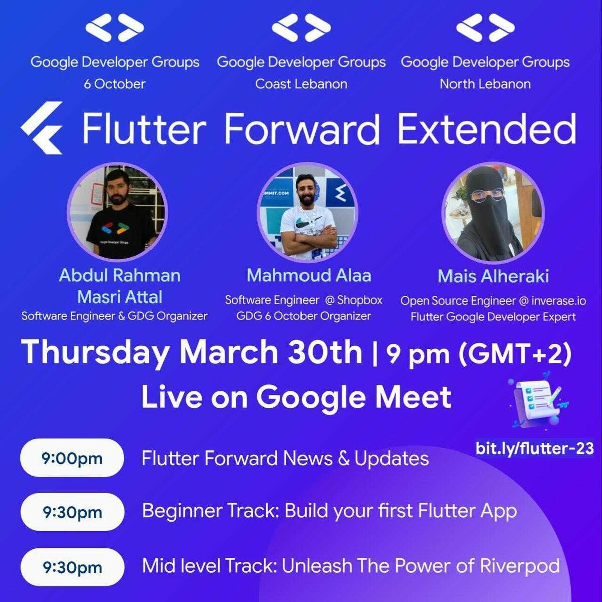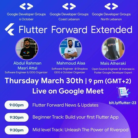 I'm presenting with @GDGLebanon & @GDGOctober in #FlutterForwardExtended a talk titled "Unleash the power of Riverpod in Flutter", join us!