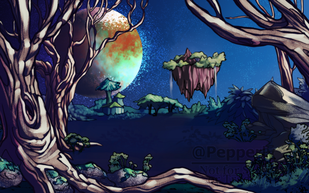 I tried "simple cartoon background" as a concept but all that ended up being was my normal painty style just with some line art. Ah. It still looks fine in-game though.