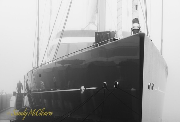 Photos in the fog of worldâs largest ketch-rigged sailboat, #Aquijo. #blackandwhitephotography #sailboatphotography #fogphotography