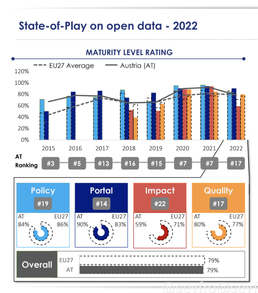 Österreich fällt im Opendata Maturity Ranking weiter zurück: 2020 noch in Gruppe der Trendsetter, 2021 Rückfall in Fast-Trackers, 2022 nur noch in Follower Gruppe - was mMn auch dafür verantwortlich ist: ein fehlendes IFG/Informationsfreiheitsgesetz https://data.europa.eu/en/publications/open-data-maturity/2022#country-overview #foiat