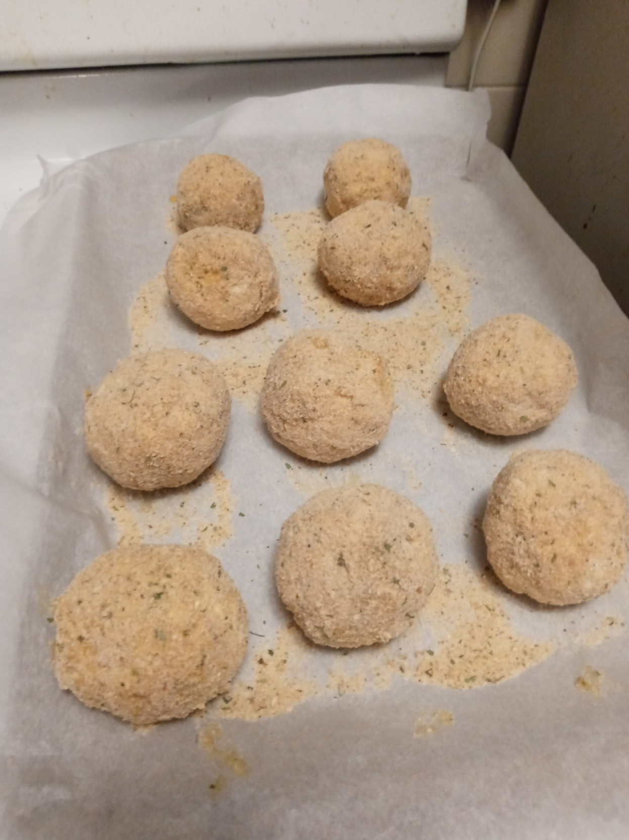 Tonight: arancini stuffed with ham and gruyere cheese. #food #FoodieMastodon