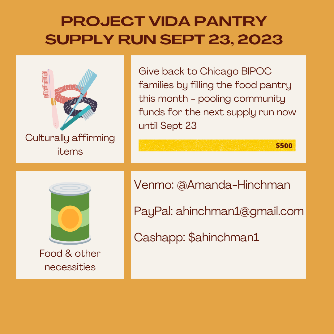 We're at $340 for the pantry run in Little Village! Thanks for keeping mutual aid strong in Chicago. You can kick in to the community-pool fund by sending $$ to: