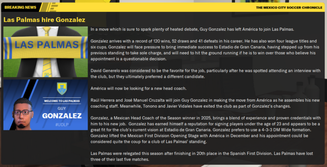 I've played #FootballManager for several years, mostly managing teams in Spain, England, and MLS, but I'm currently in Liga MX managing América for the first time ever.