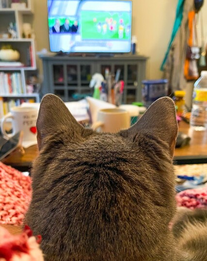 Momo decides to get comfy with me this morning for the world cup ⚽ #catsofmastodon #cats #catstodon #football #FootballWorldCup #worldcup
