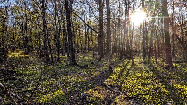 The very fleeting emerald green of early spring. Woodtick Trail, Wolcott, Connecticut. May 13, 2020, 6:46 PM.