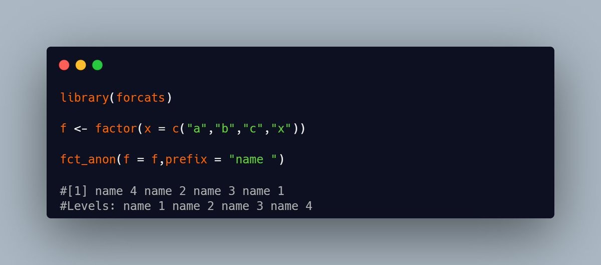 fct_anon() allows us to anonymize our factors, by replacing with a prefix and a number