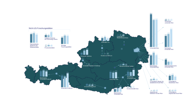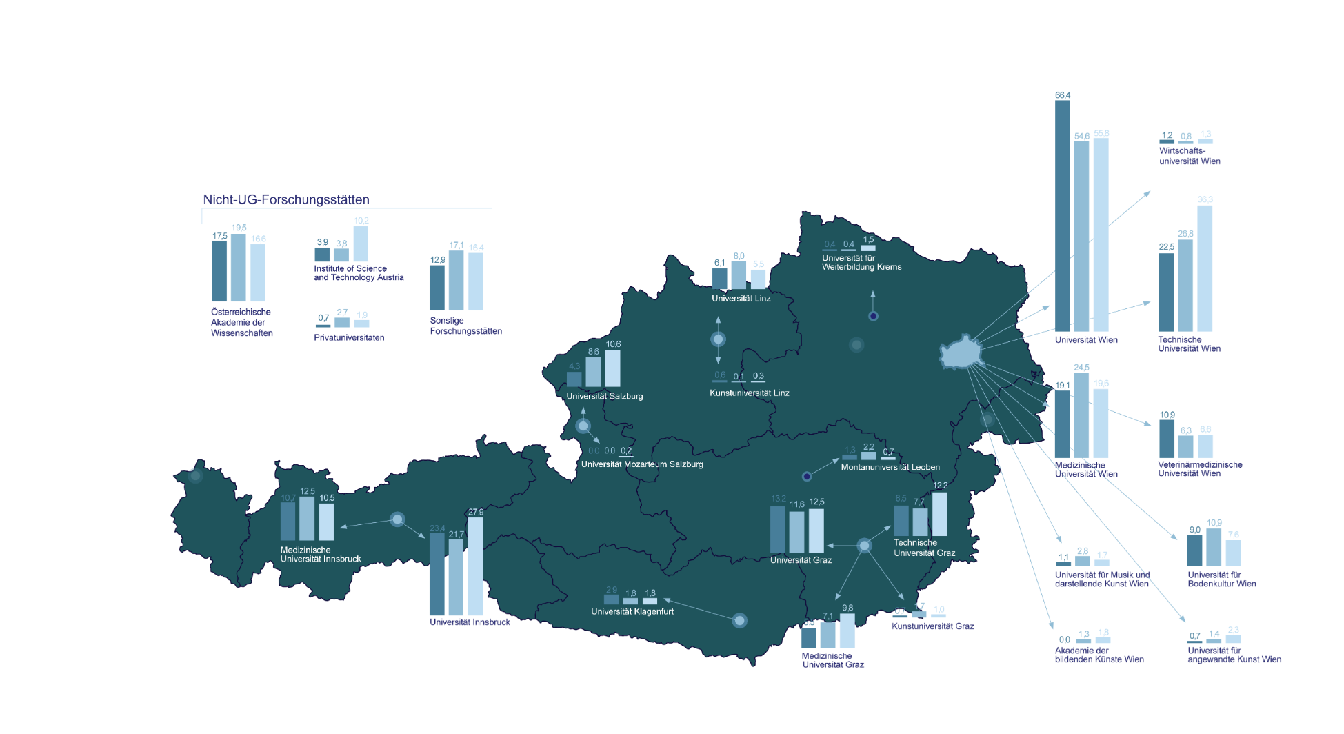 Bei der Verteilung der Finanzierung nach Forschungsstätten liegt die @univienna mit 55,8 Mio. EUR an der Spitze, gefolgt von der TU Wien mit 36,3 Mio. EUR und der @uniinnsbruck mit 27,9 Mio. EUR. #Forschungsförderung 7/7