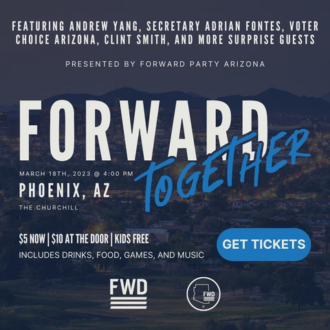 The Forward Party is here to build a new era in American politics. Join us in Phoenix to learn more and meet hundreds of your fellow Forward thinking Arizonans.
