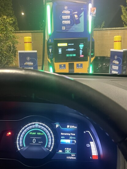 Taking advantage of another free charge from the #FossilFuelCriminals at Chevron. A new station at Gordon Head in Victoria. Topping up tonight so that we can make the 220km straight home from the Airport when we get back on Friday. Will need a full 80%. Should be about 30min.