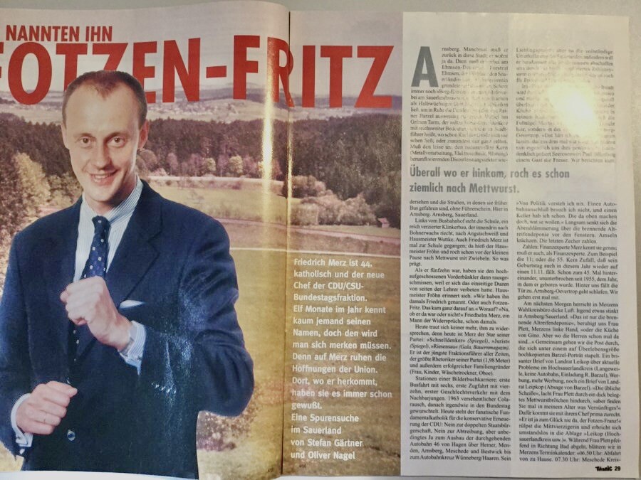 Ausgabe 4/2000 der Titanic. Sie wussten es schon damals! Und sie nannten ihn #Fotzenfritz. Sorry für das schlechte Foto.
