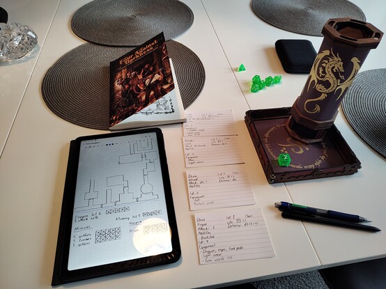 I've taken an interest in #SoloRPG dungeon crawling games lately. #NoteQuest is nice, but combat is a bit simplistic in my view. Looking at #FourAgainstDarkness now which looks promising. The fact that you have four chars and not just one allows for more depth. I also backed the #2d6Dungeon Kickstarter which has another week to go - it seems to have the best combat system. #D100dungeon also looks great and has a supplement for #HexCrawling, which also interests me.