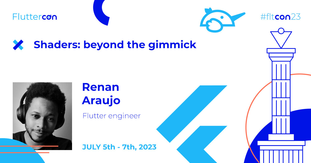 @reNotANumber will join us at #ftcon23 – Araujo's talk will explain what #Fragmentshaders can do for everyday #FlutterDevs & how they can be combined with all we know & love about #Flutter by using creative examples.