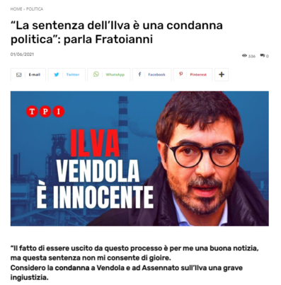 Prescritto il reato di favoreggiamento per Nicola #Fratoianni, di Sinistra Italiana, all'epoca assessore regionale della giunta #Vendola. Anche questo stralcio è tratto dal sito del Fatto Quotidiano di oggi, articolo di Francesco Casula.