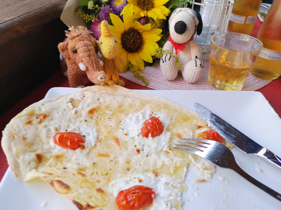 In der Grimmaer #Frauenkirche hat Frauchen einen Pin in die Karte gesteckt: da wo sie getauft wurde. Aufm Wochenmarkt ham wir Blümchen gekauft und jetzt machen wir Pause und stärken uns.