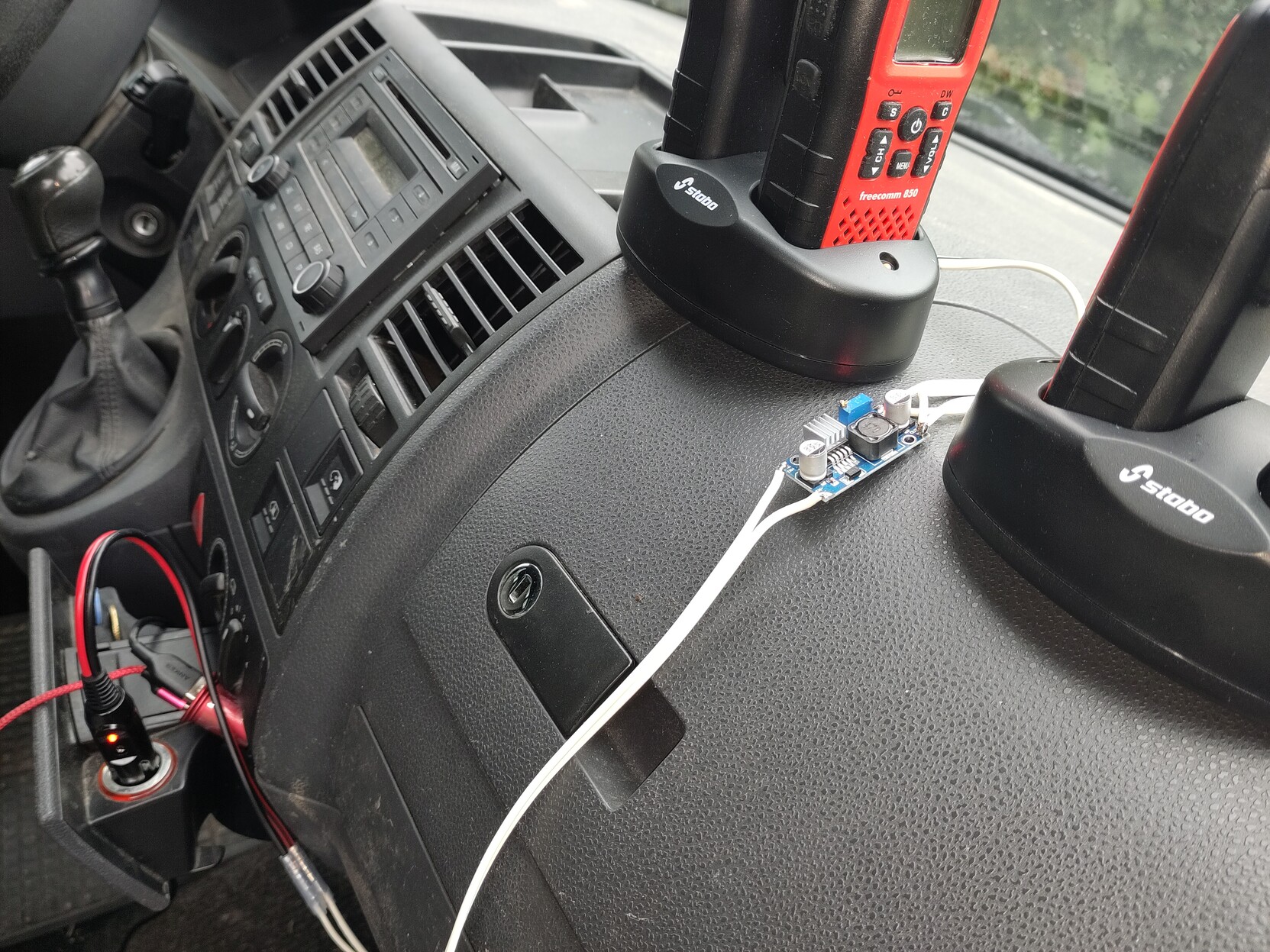 Und fertig ist die Walkie-Talkie KFZ Ladestation für's #Freakstock. Vielleicht bekommt das Lm2565 Modul aber auch noch einen Kühlkörper auf die Rückseite. Wird schon gut warm wenn es bis zu 2 Ampere bei 5,5 Volt ausliefern soll.