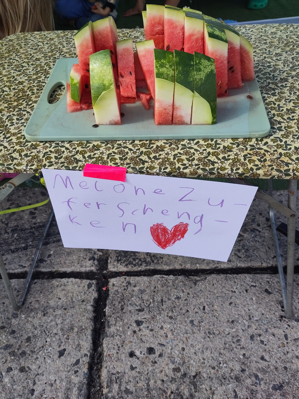 Eine meiner liebsten #freakstock Traditionen ist es vorher die größte Melone im Supermarkt zu kaufen und dann auf dem #Festival Kleinzuschneiden und zu verschenken. Und seit diesem Jahr schreibt K1 auch ein Schild dafür <3