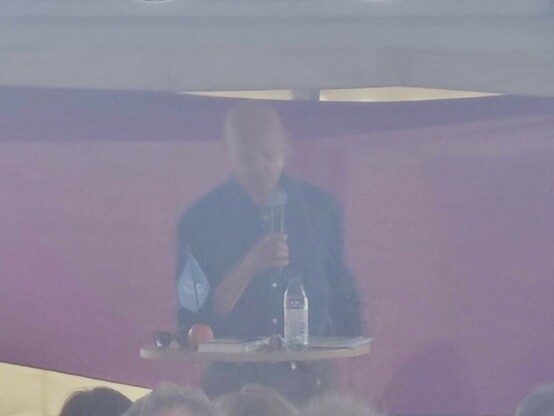 Pierre Schori inleder sitt tal med att prata om Orwell's 1984.