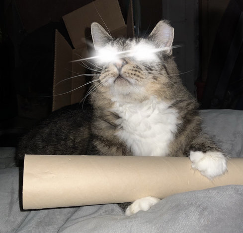 @GottaLaff That said… I absolutely fucking I love when Joe’s snarky. #Dark #FredTheWonderCat is ready to help #DarkBrandon24 win in 24 as soon as he’s done beating up this cardboard tube #CatsOfMastodon #Cats #Katzen #USPol #Biden Fred looking up with white laser eyes that match his white ruff, while holding his very bitten cardboard tube with his white floofy paws.