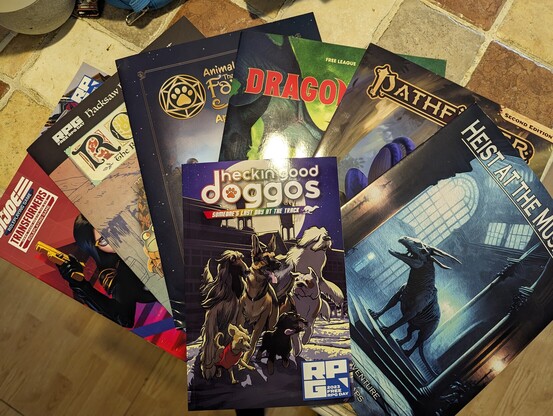 Another day in troll paradise. In the the spirit of „know your enemy“ some #DnD / #OSR related #FreeRPGDay23 loot - the #PathfinderRPG and the #DCC module.