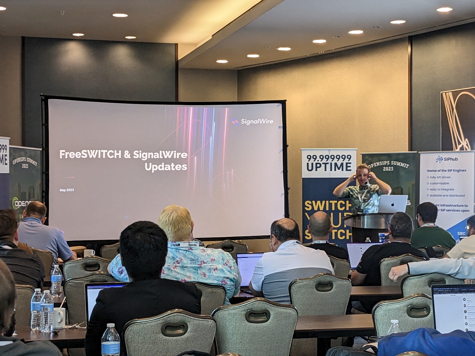 Evan McGee delivers an update on #Freeswitch and #Signalwire to OpenSIPS Project Summit 2023 in #Houston #foss #voip #webrtc