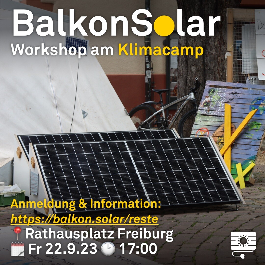 @solarcamp_freiburg Wer Interesse an einer upcycling Balkonsolaranlage hat, der kommt am besten am 22.9. um 17:00 ins @Klimacamp in #Freiburg.