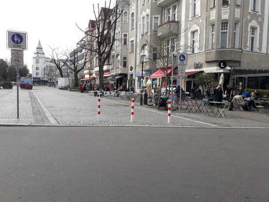 Breslauer Platz #Friedenau Die drei geringelten Blechstangen sind schick und gut, aber: warum passen links und rechts locker noch ein MIV dran vorbei? 🤨 🤦♂️ 😡