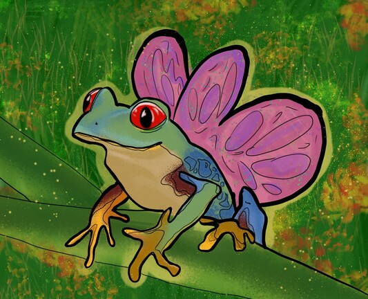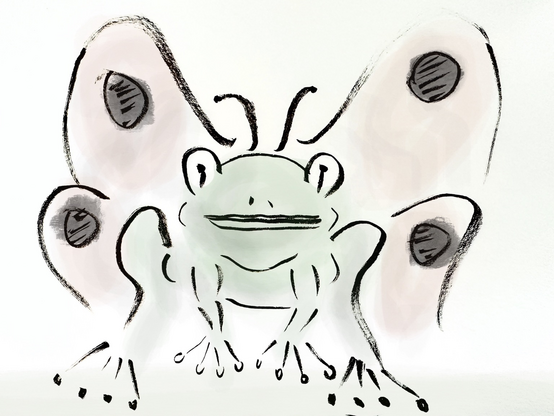 Most recent challenge from the mastodon.art Curator: draw a butterfly frog. Quick Procreate drawing.