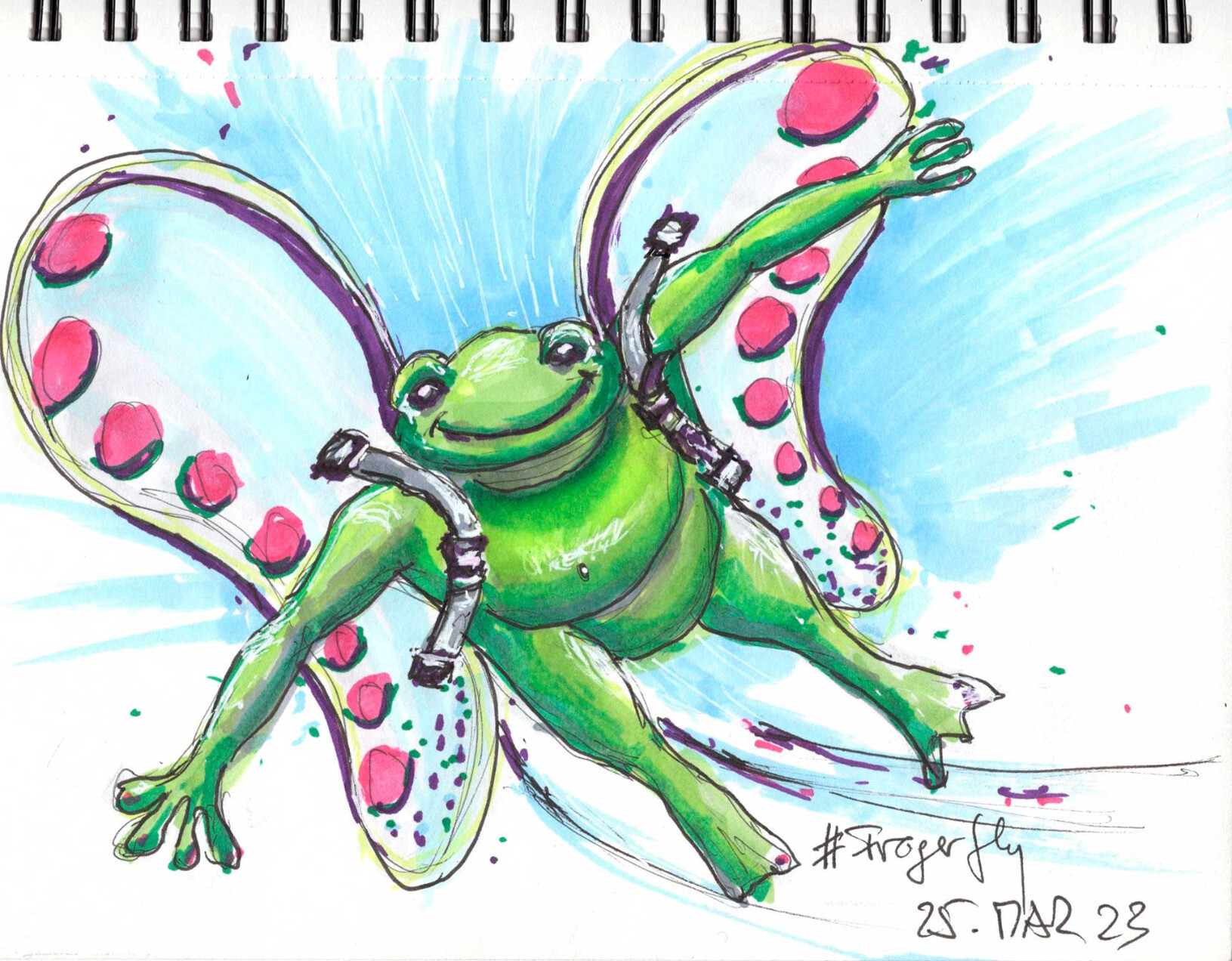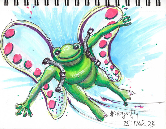Happy #Frogerfly ! Bei diesem miesen Windwetter heute eine Skizze für die #SillyCuratorPrompts mit den #marker gemacht. #sketch #sketchbook #copic #ink