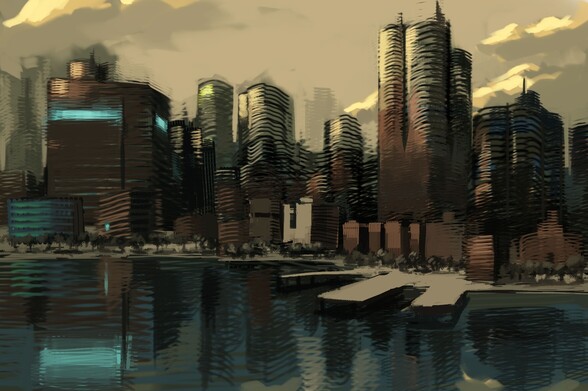 HEARTFELDT330: Waterfront Skyline #art #MastoArt #DigitalArt #DigitalPainting #Photoshop #Sketch #SpeedPaint #Landscape #City #Urban #Downtown #Skyscrapers #FromImagination