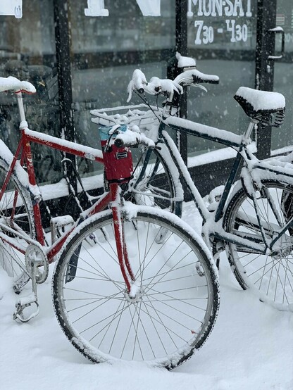 (Side streets are slick. Looks like I'll be seeing @LdnOntBikeCafe@twitter.com for those studded tires after all.)