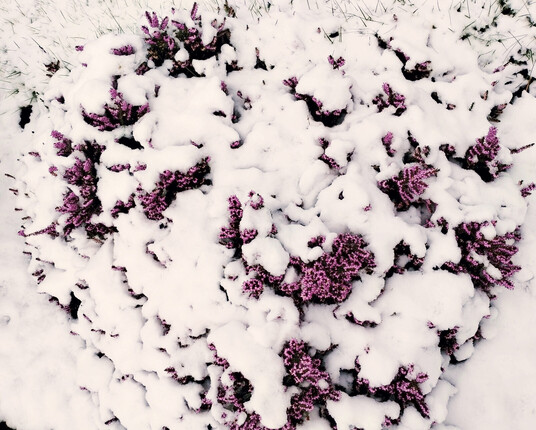 @grimethorpeband Here's some heather from my front garden, which probably didn't expect snow on its flowers quite so late in the winter.