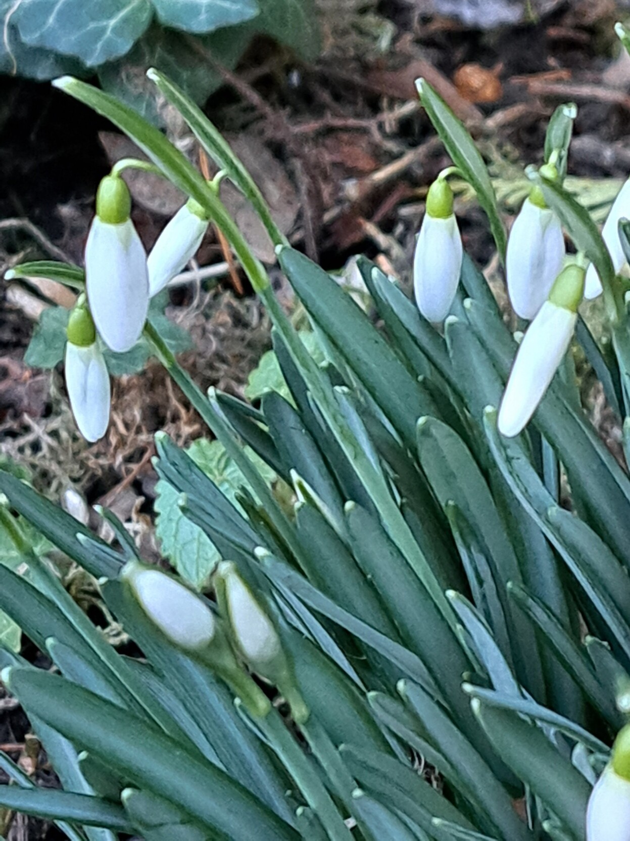 #Frühlingsboten in unserem #Garten. Die #Schneeglöckchen sind noch nicht ganz aufgeblüht, aber sie glänzen schon in der #Sonne.