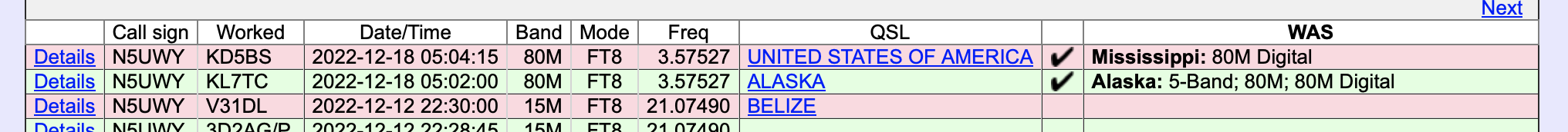 Got 'em. I claimed 40- and 30-meter WAS a few years back and had 10/12/15/17/20 "ready" so when I got the AK confirmation for 80, I put them all in via LOTW. #8BWAS!! π