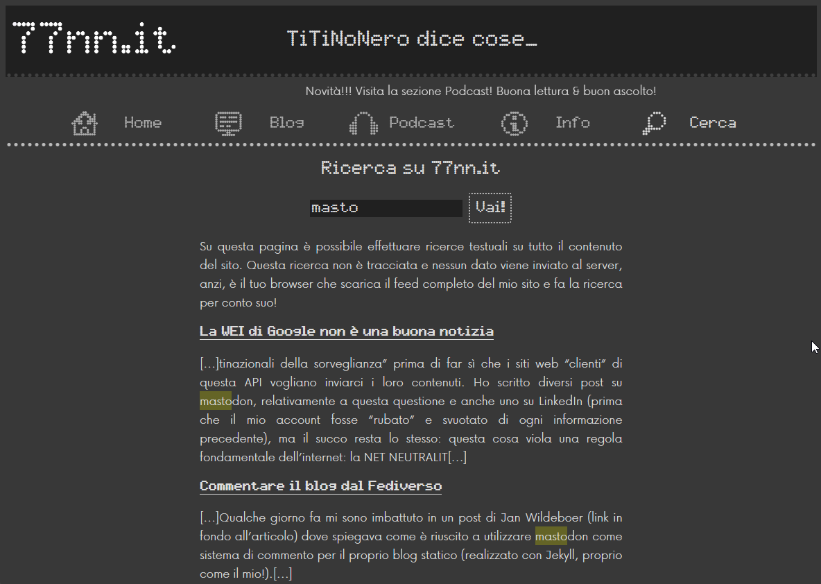 Ho implementato la #fulltextsearch sul mio sito statico.