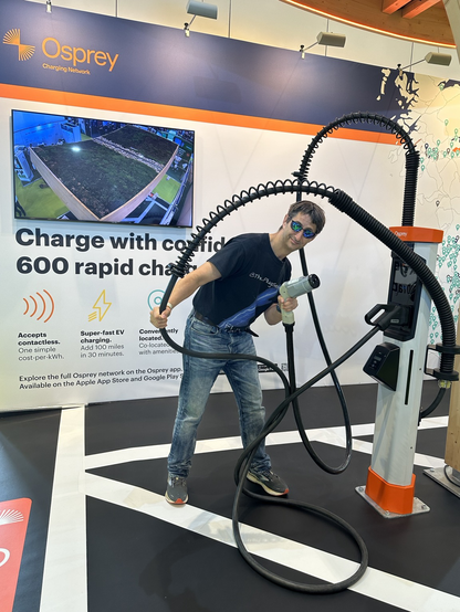 Love these bendy @KempowerOyj chargers at the @OspreyCharging stand. These are great tech and practically designed for stretching to easily reach charge port on your EV. Also use intelligent dynamic load balancing to optimise charging speeds.