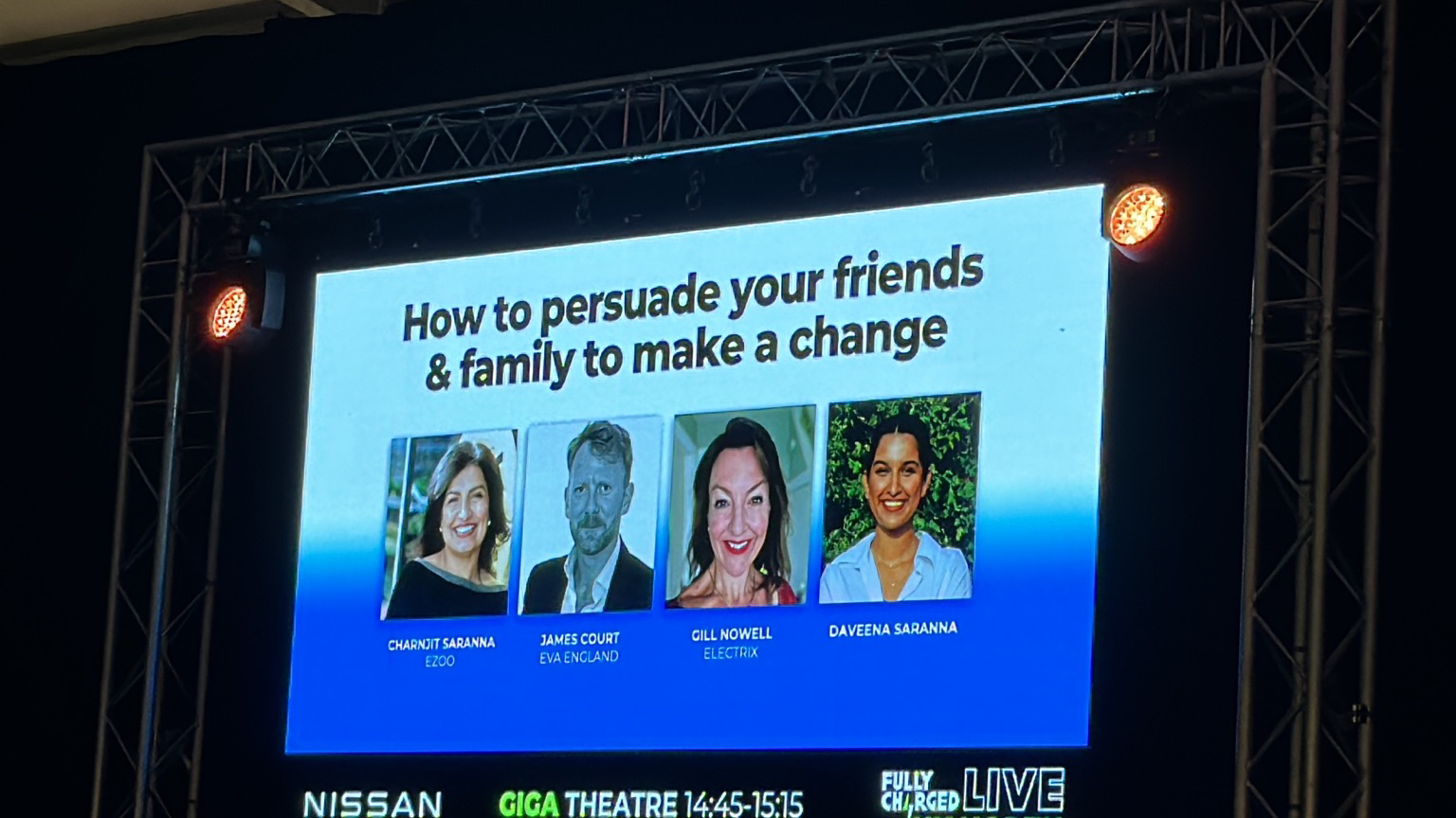 Hi. Still here. Watching @Gill_Nowell on stage in Giga Theatre. Good topic, how to persuade friends & family to make a change.