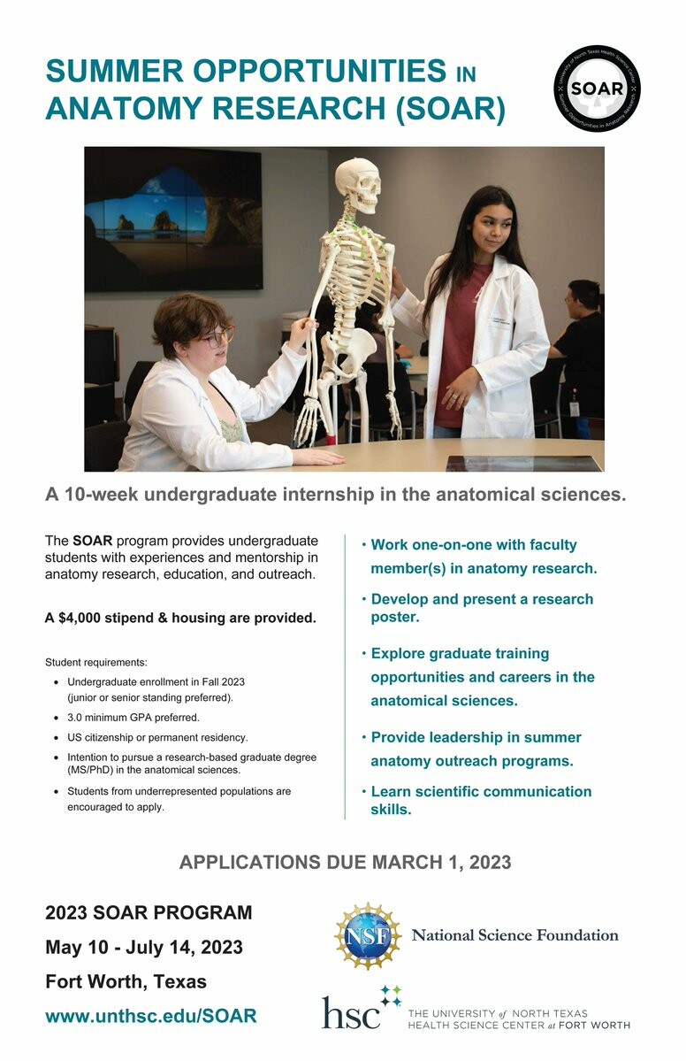 Applications for #SOAR2023 are now open! This is a great opportunity for undergrads to do PAID research in #anatomy, #functionalmorphology, #bioanthropology, and #biomechanics.