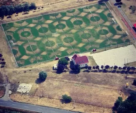 A sprinkler head spray pattern, appearing from contrasting desiccated grass; I'm collecting examples about the traces displaying the use of tools or techniques in the landscapes, from an aerial perspective. #functionalpatterns #aerialperspective