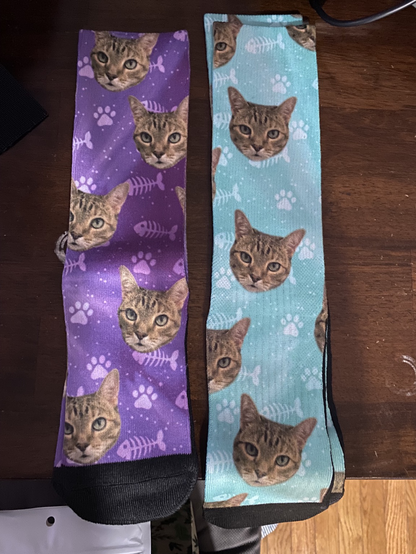 I may or may not have been gifted socks with my cat on them! #CatsOfMastadon #FunSocks