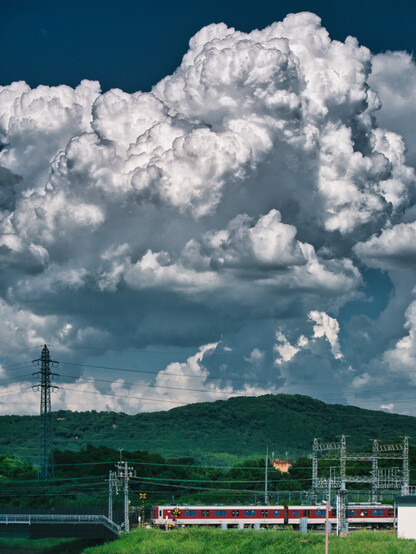 稲荷山と近鉄電車と夏の雲