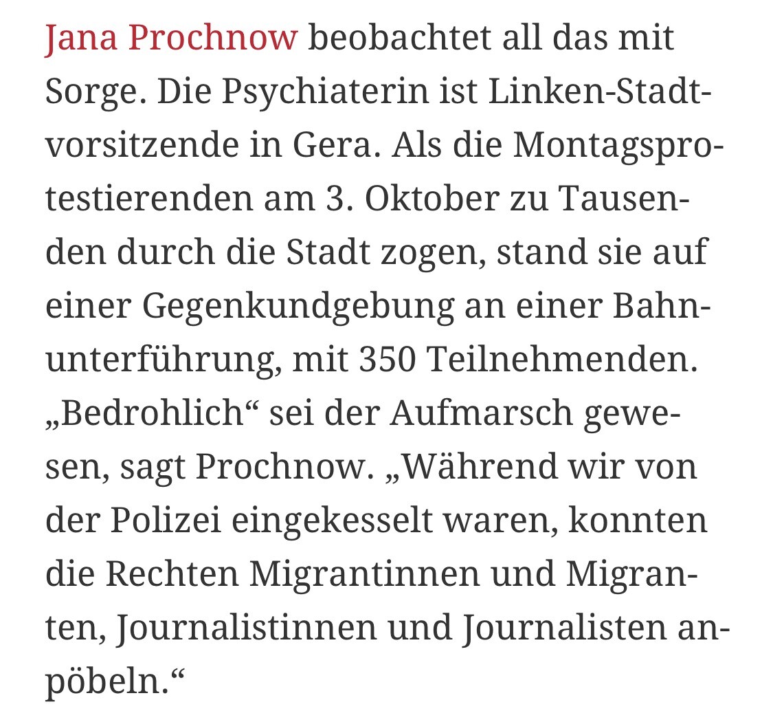 Ausführliche Recherche zu den rechten Demonstrationen, #Nazis und Zuständen in Gera von @tazgetroete @konradlitschko : https://taz.de/Protest-in-Ostdeutschland/!5893766/