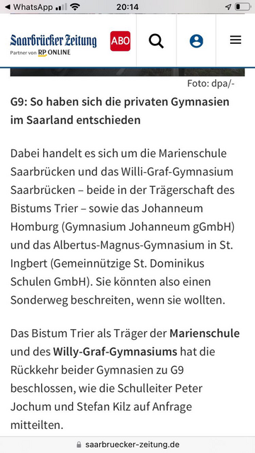 Die privaten #Gymnasien im #Saarland kehren zum neunjährigen Gymnasium zurück. Gegenüber der @szaktuell durfte ich die Gründe erläutern #G9