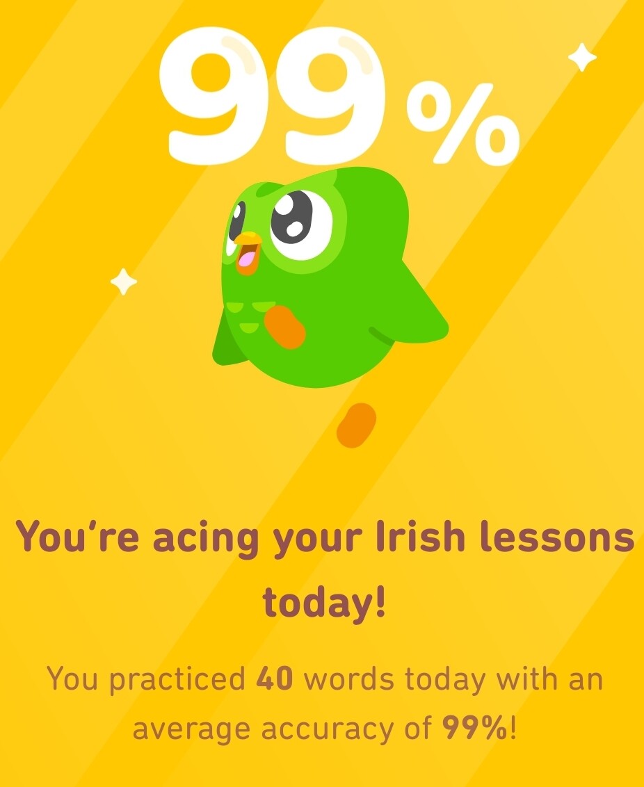 Thanks to the encouragement and posts of the #gaelgeoir (what's the plural? gaelgóirí ? That looks like Scottish Gaelic to me.)