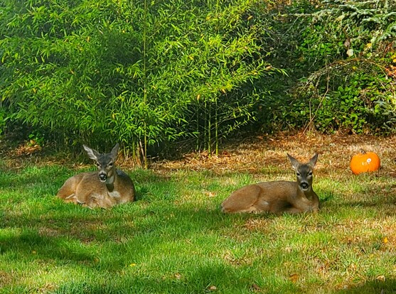 The pumpkin will eventually be a pumpkin plant, bringing forth the next generation. Mother and daughter deer will similarly bring forth a new generation for the next year.