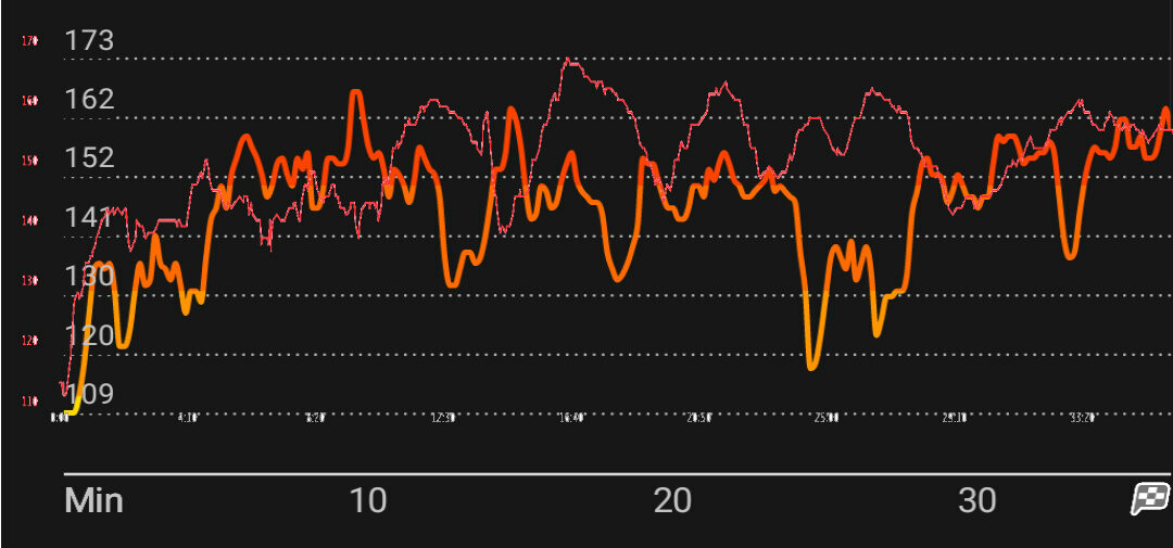 Ich weiß, sieht etwas wirr aus. Aber dennoch. Die gut zu erkennende Linie ist die Galaxy Watch 5 pro am Handgelenk. Die etwas undeutliche Linie mein Brustgurt an der Garmin. Also, irgendwas stimmt bei der #Galaxywatch5pro nicht.