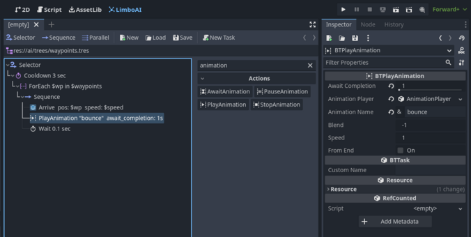 Just started working on the upcoming version of #LimboAI. Added several new tasks that are commonly useful in behavior trees.