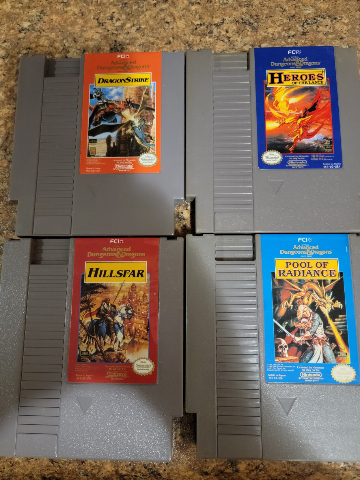 My #retrogaming #gameoftheday is a 4 score of the AD&D #nes games. Dragonstrike. Heroes of the Lance. Hillsfar. Pool of Radiance.